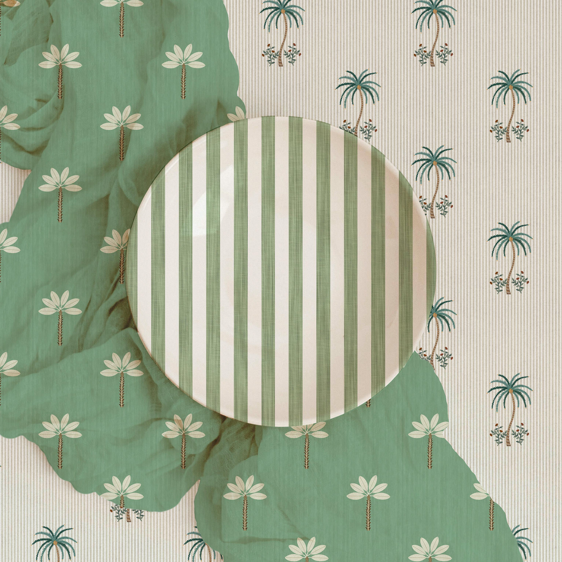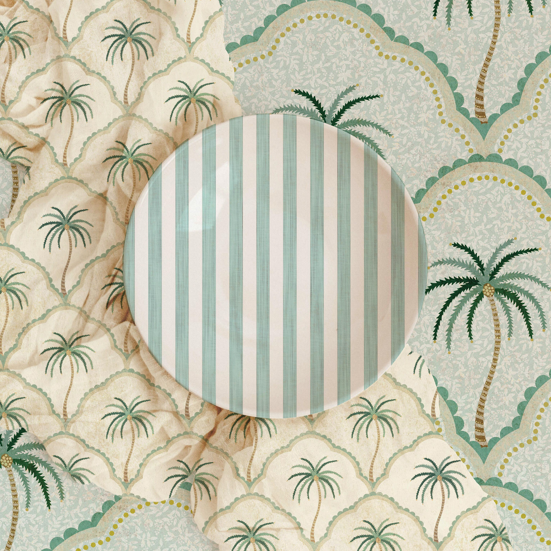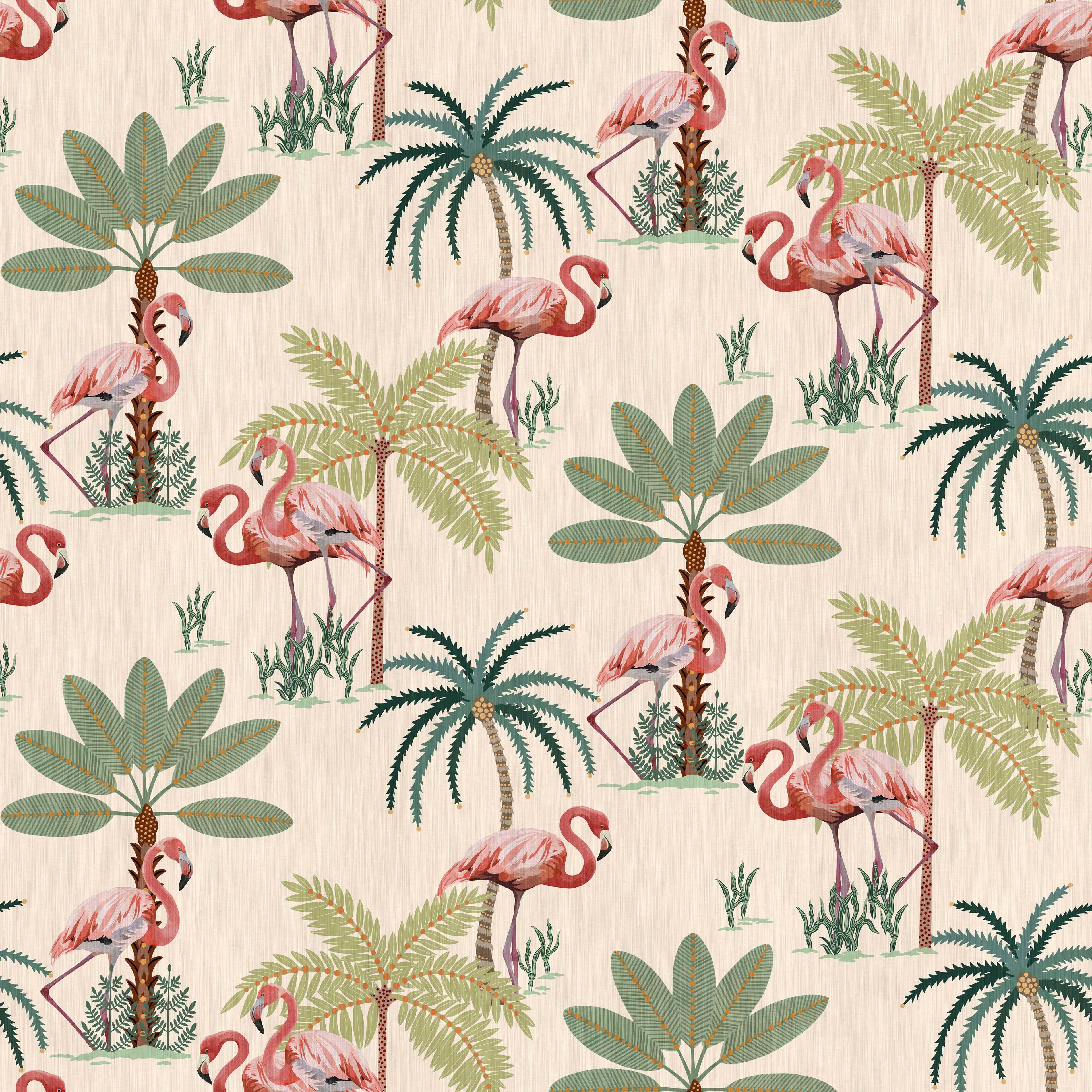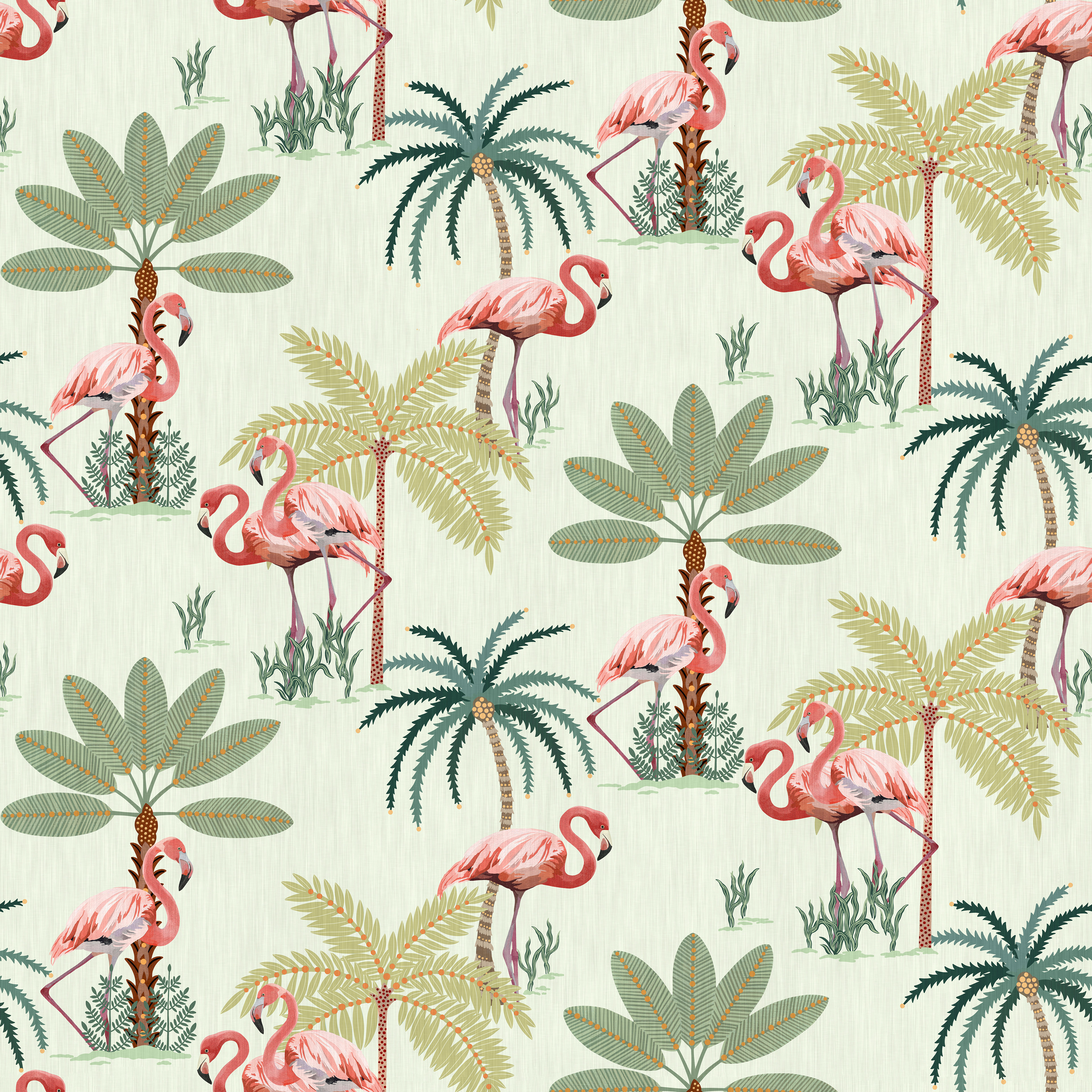 A tropical themed collection featuring vibrant flamingos and playful palm trees, perfect for children's rooms where soft pastel tones come together and their imaginations can run wild.